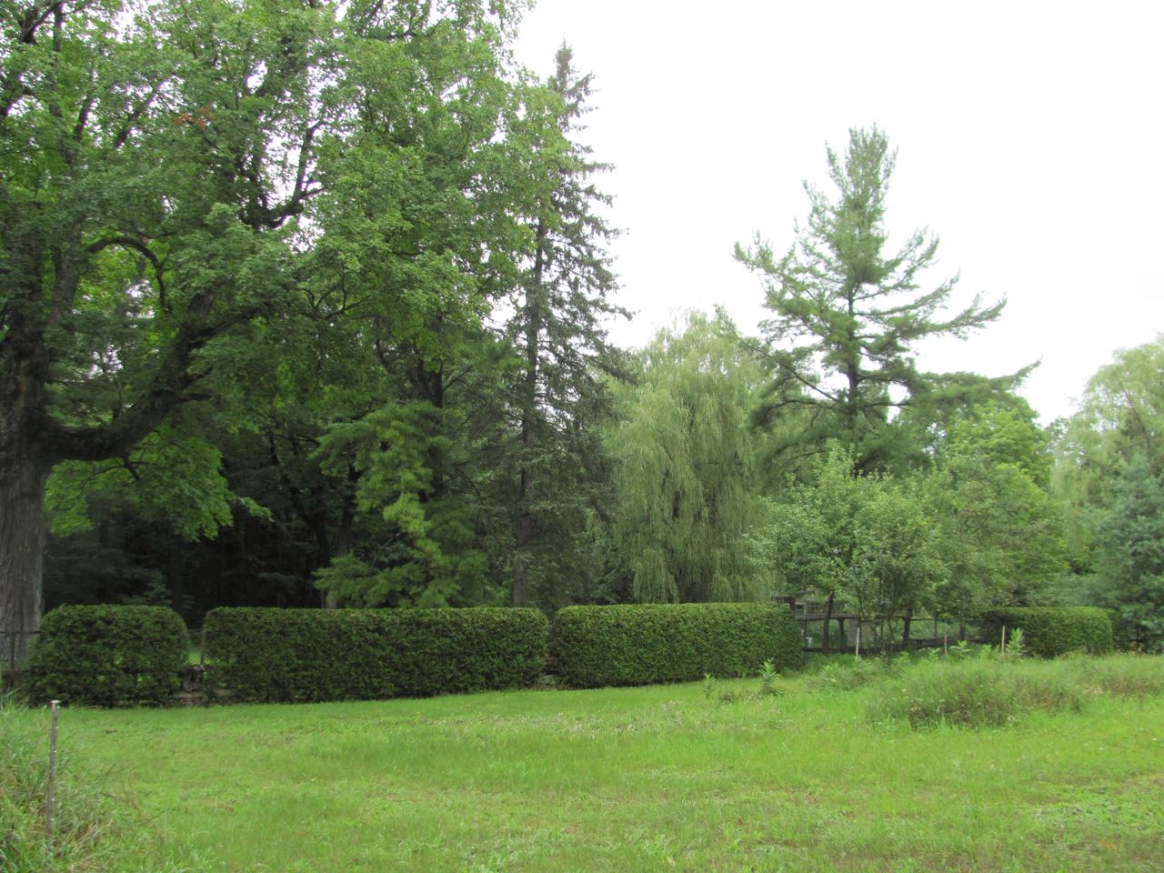July garden after the first rain, gone crazy, cedar hedges NOT trimmed by deer or me