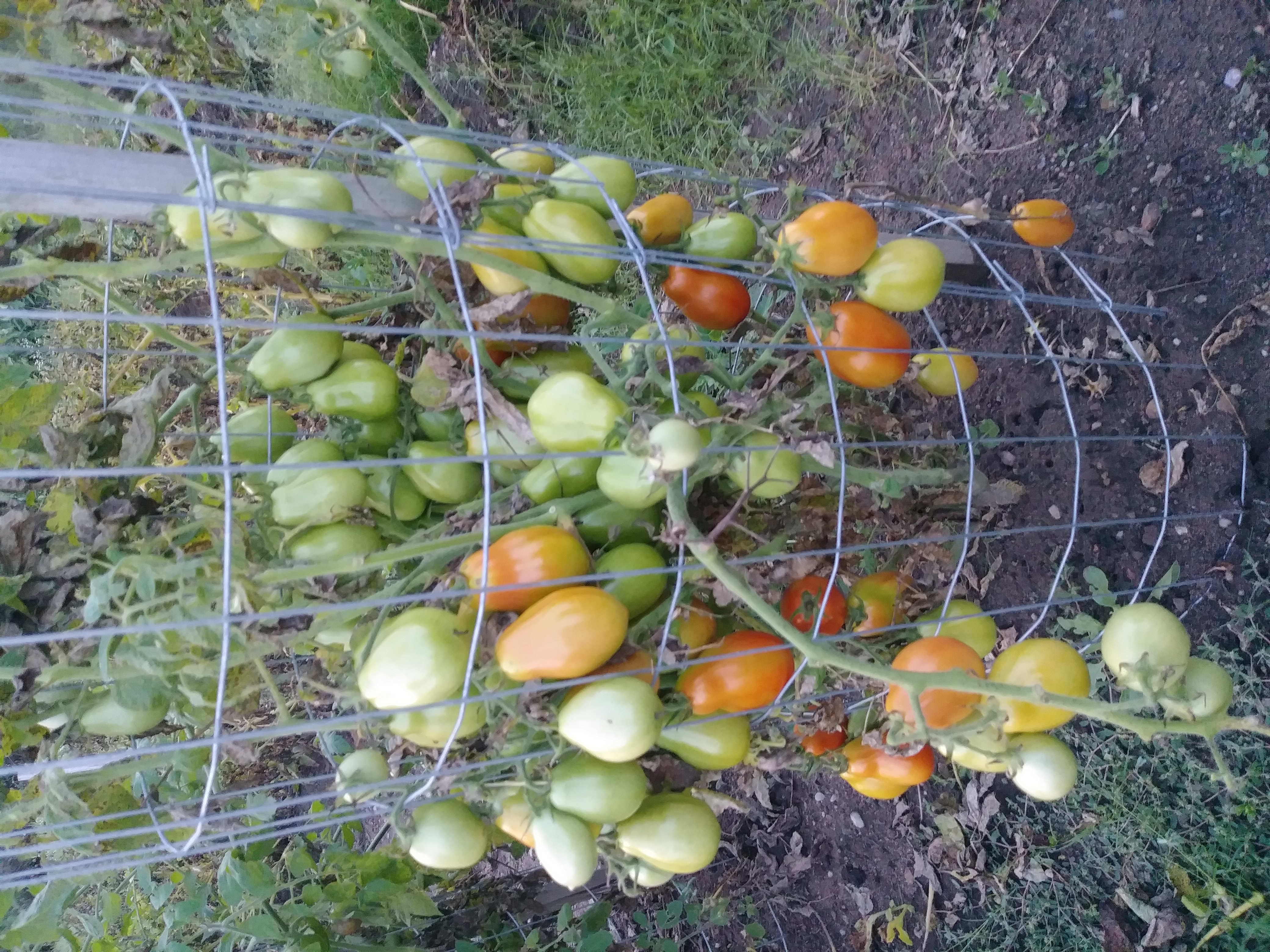 Ok...enough already...one of 12 plants...Amish Paste....wonderful canning tomato. ..and the only fertilizer is old cow crap in fall tilled in...got a little blight coming on so hurry up ripening is my daily prayer