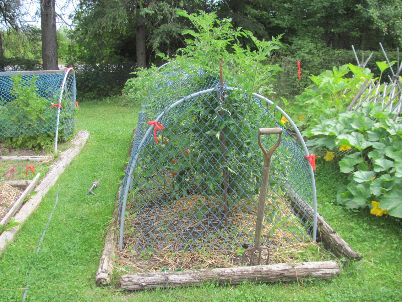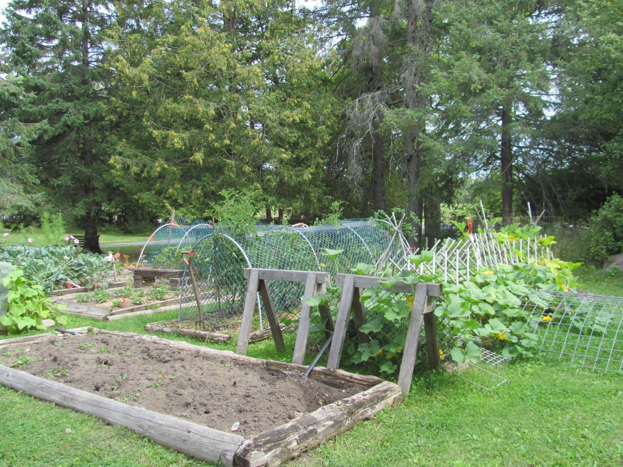 Butternut Squash went a bit out of control, so had to employ saw horses to keep it out of garlic.