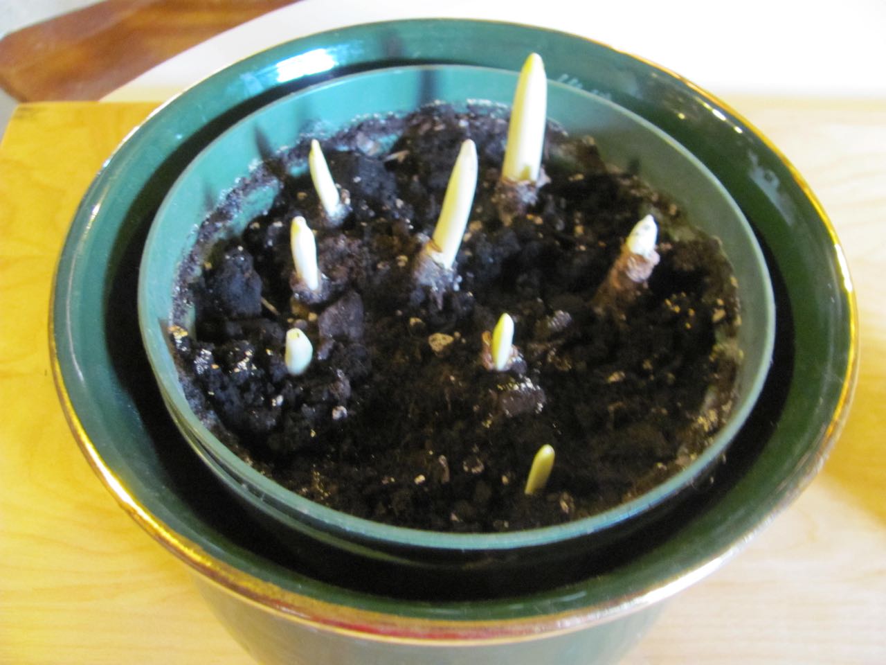 So the bulbs are normally planted 6-7 inches deep-which is why the waiting until they are 4 inches tall before bringing them out. Fingers crossed that they bloom for you!