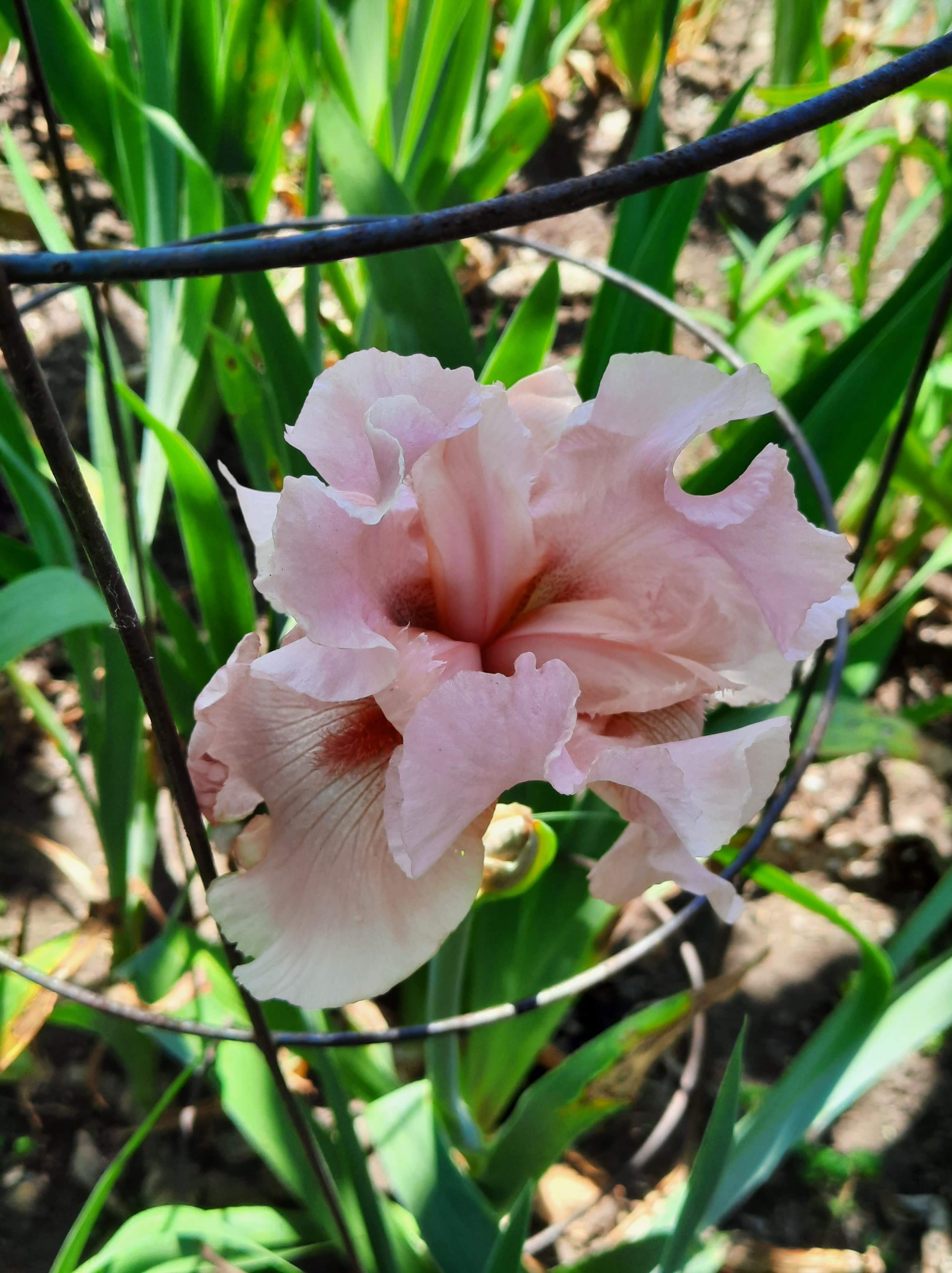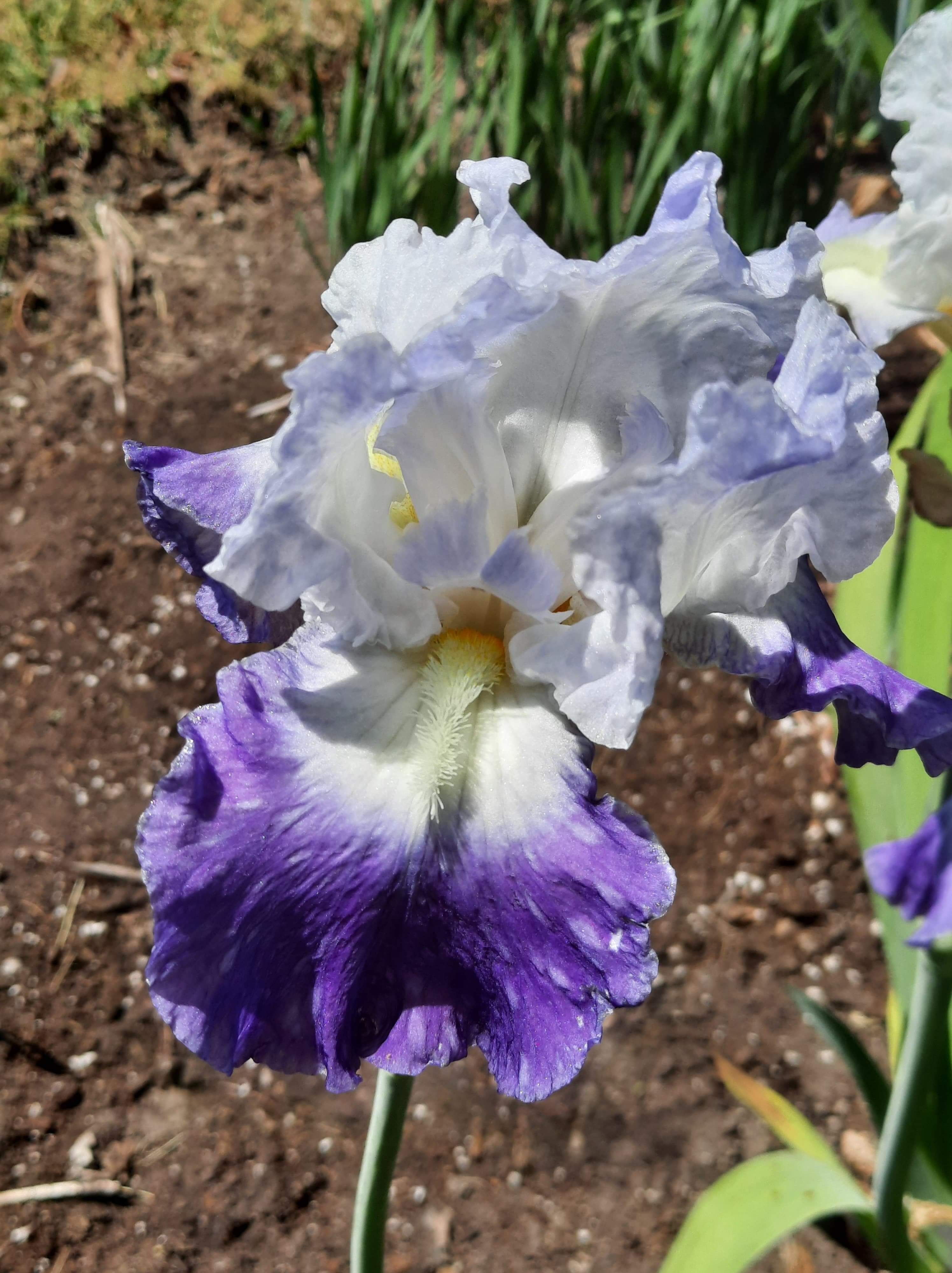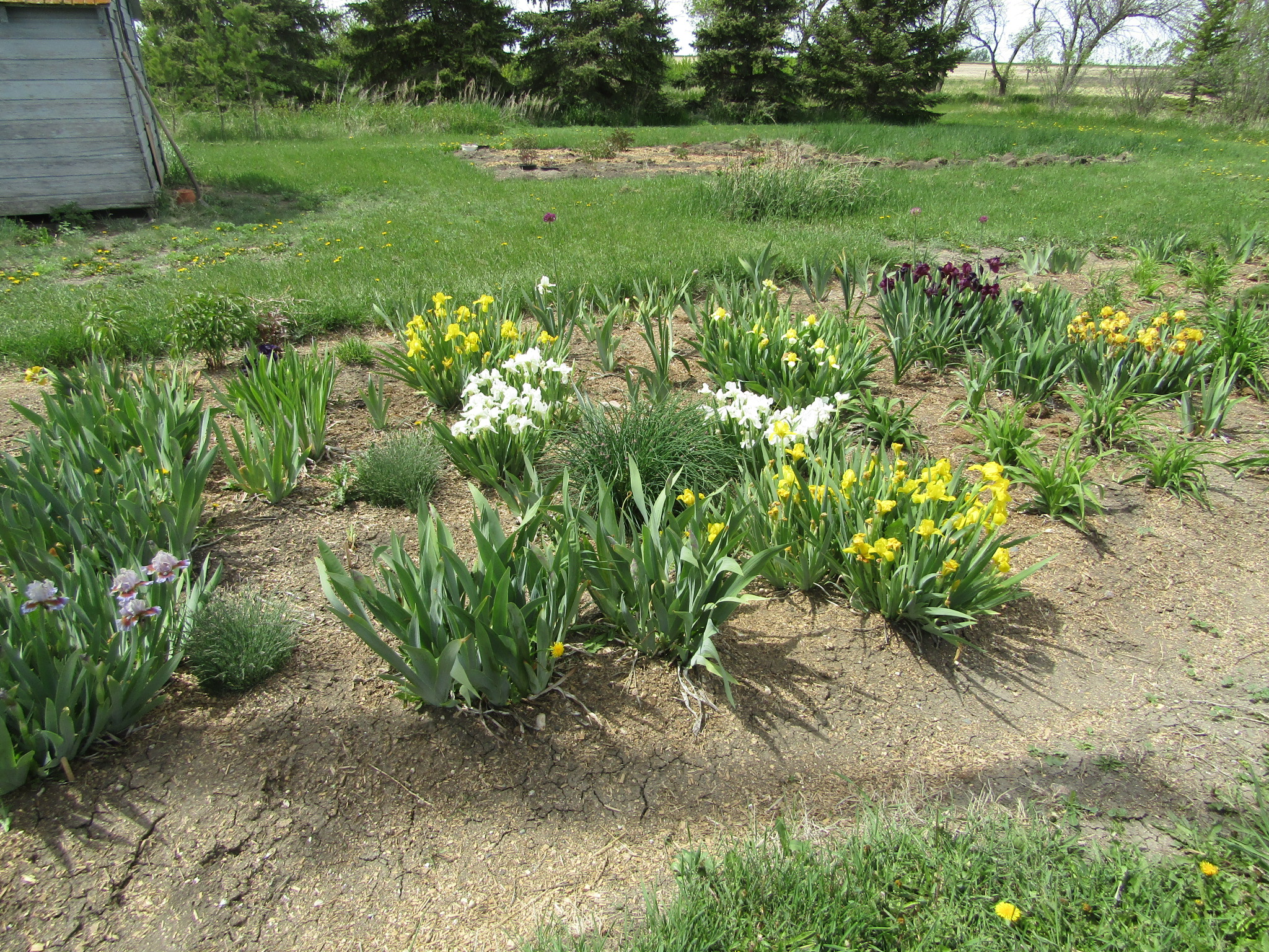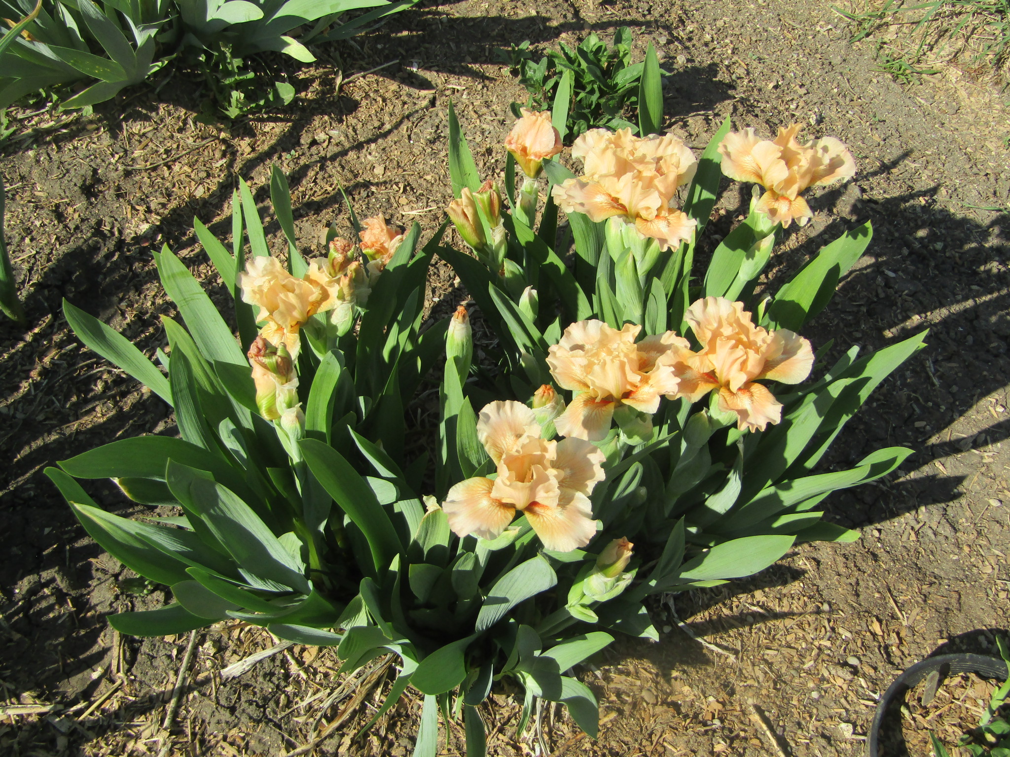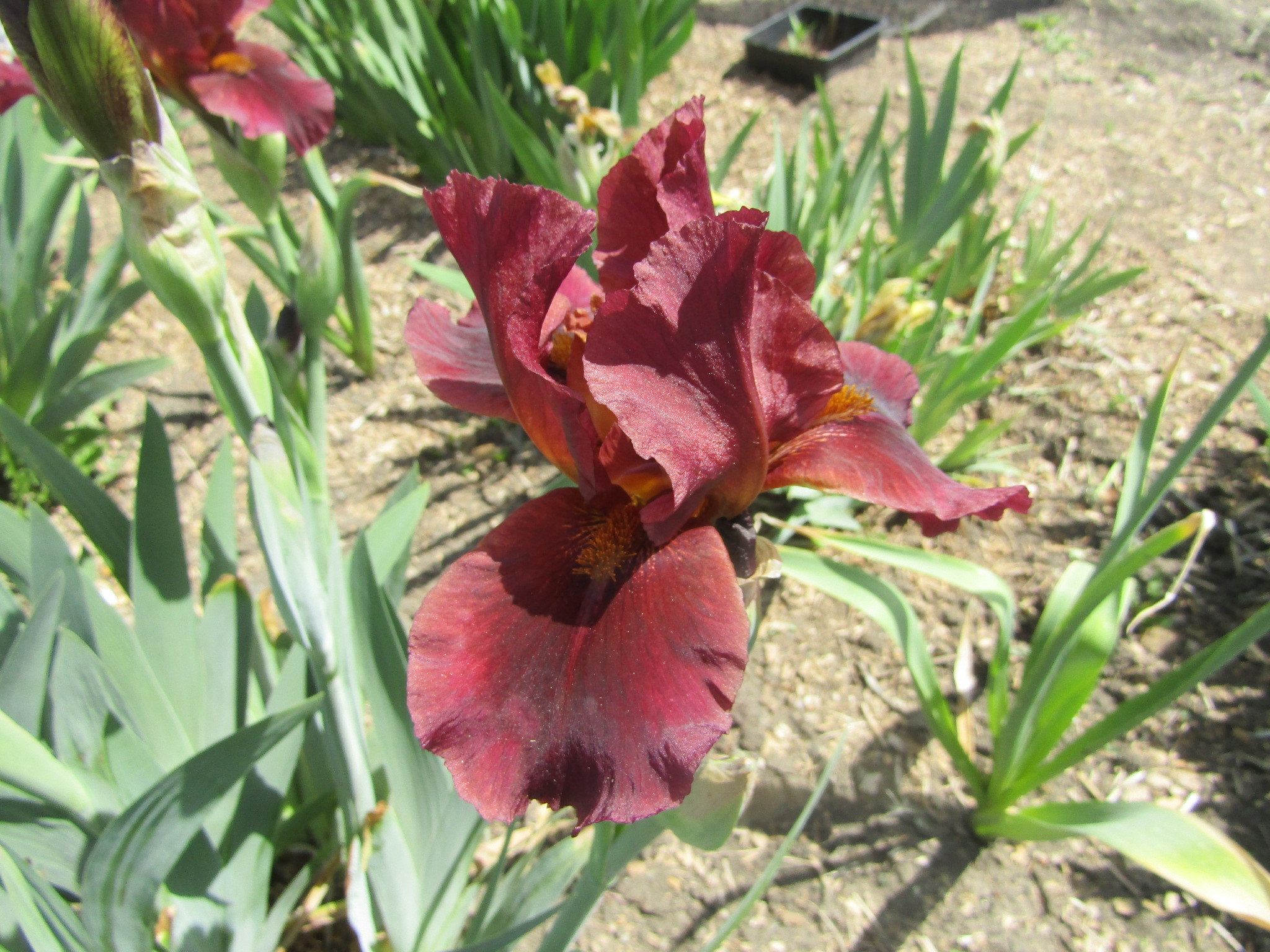 Iris's eh! we have one that looks like the 4th one from the top. the purple/yellow color. it went to bloom and the darn wind knocked it over!