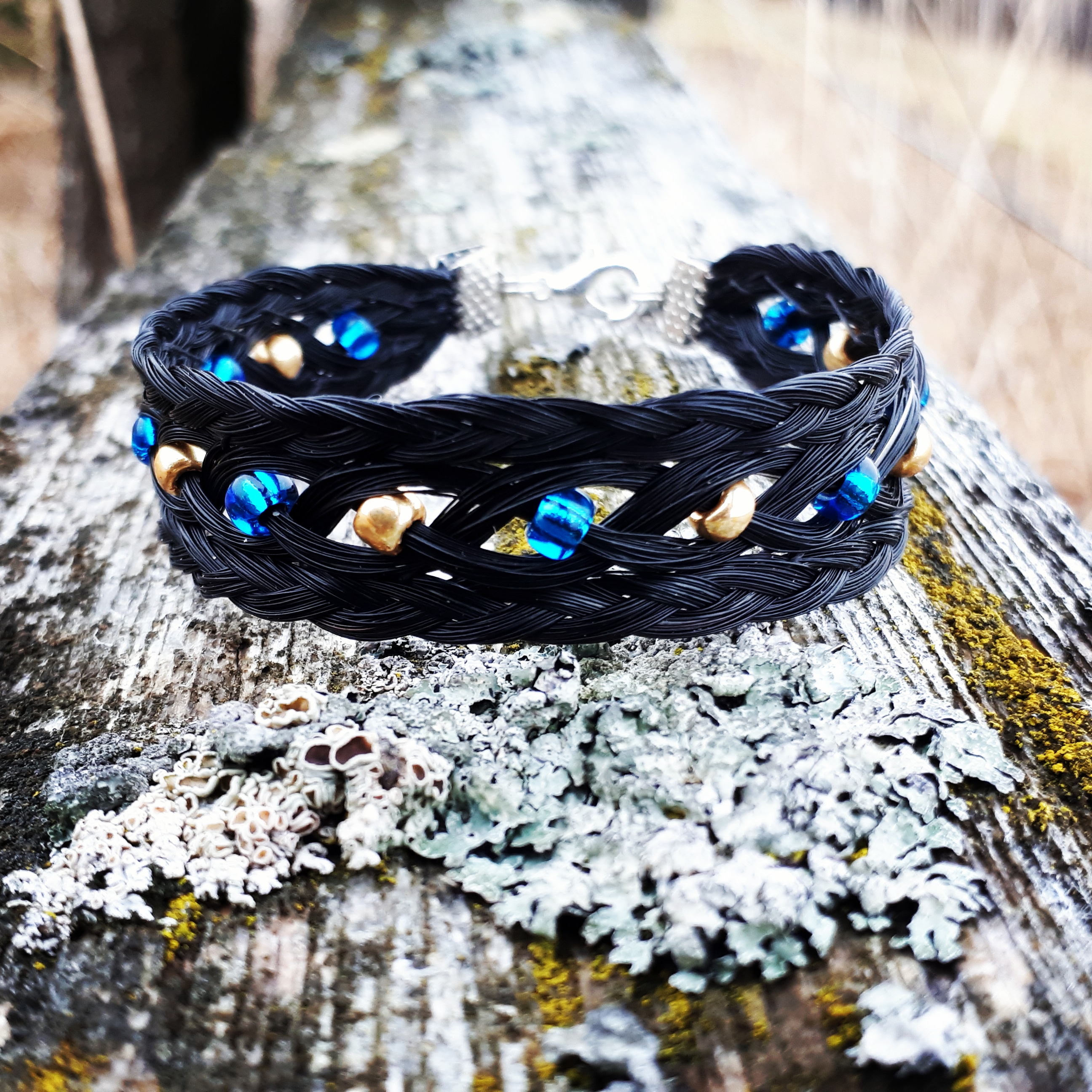 I make bracelets, hatbands, dreamcatchers, etc, out of horsehair. I just finished these 2 this weekend.