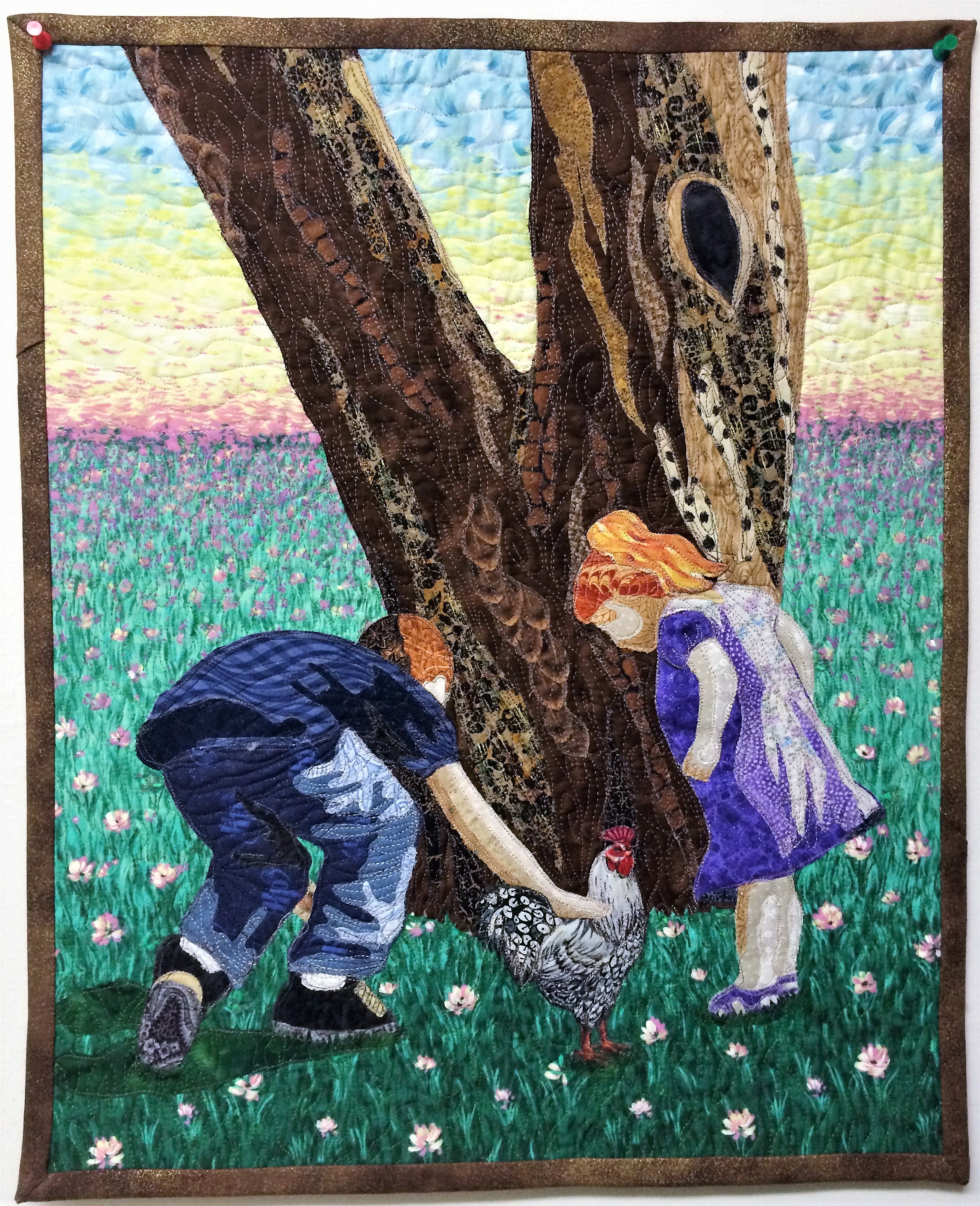 When you said the "Girl with the chickens", that is a Full size self portrait quilt.