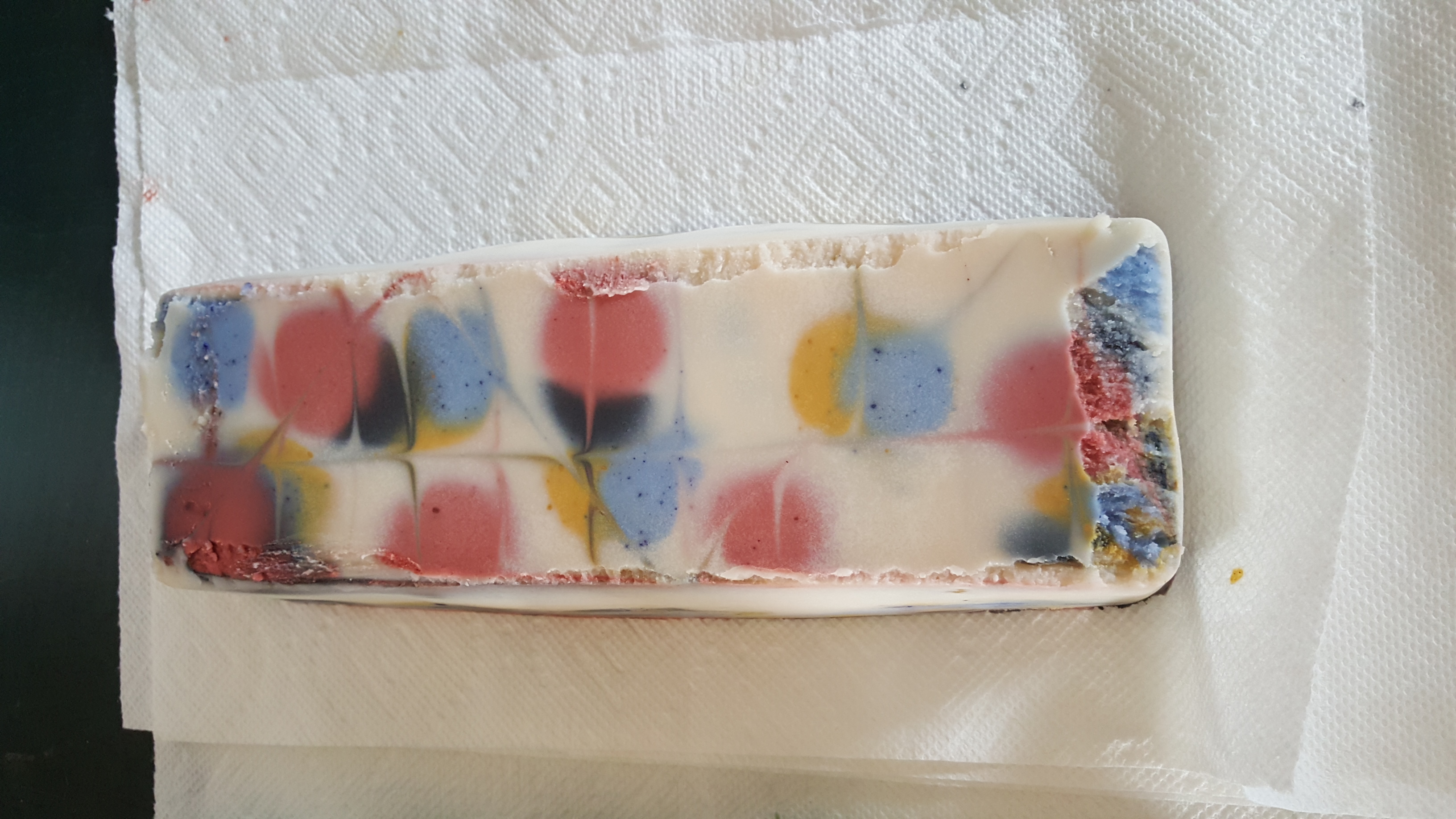 Its white on the bottom I havent cut it into bars yet-still too soft. Maybe in a couple of days....