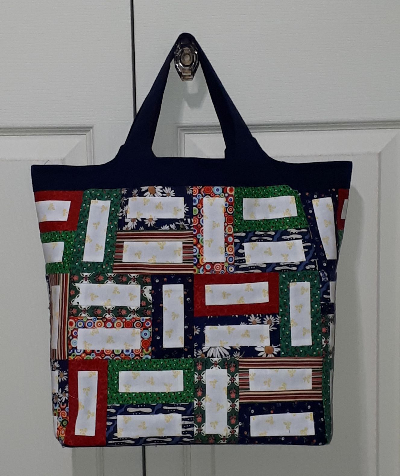 Your fabrics look nicely coordinated. I suggest finding a favourite quilt block, or like you said above - combining ideas - and working it into a different project of your choice. I just happen to choose bags.