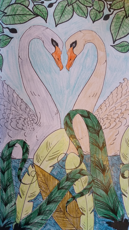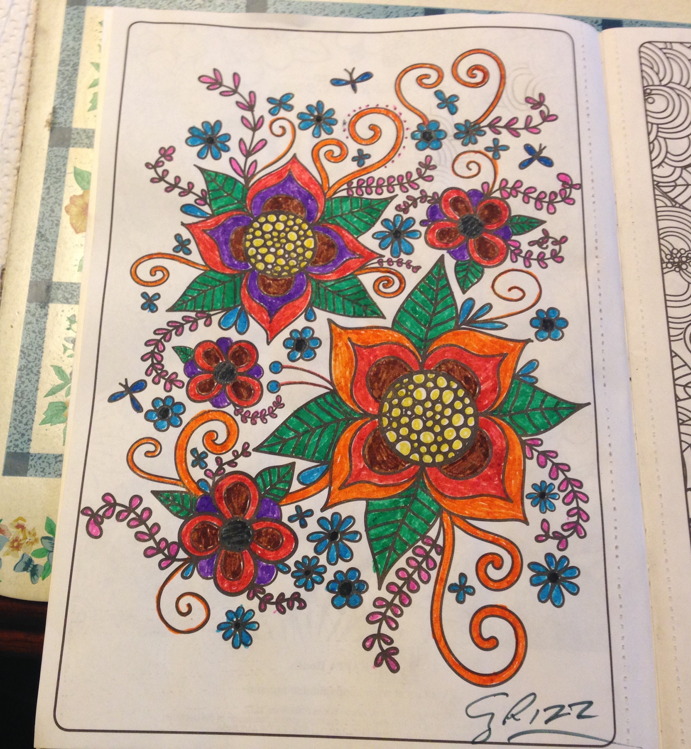 Here's one of my colouring contributions...started out as a one-page doodle, but I ended up having to glue 4 pages of paper together LOL