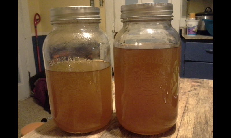 iv been boiling 5 gallons for about 5 n a half hours now. iv boiled it down to a third. could be a couple more hours I figure. Iv been using cheese cloth to filter it into the jar.