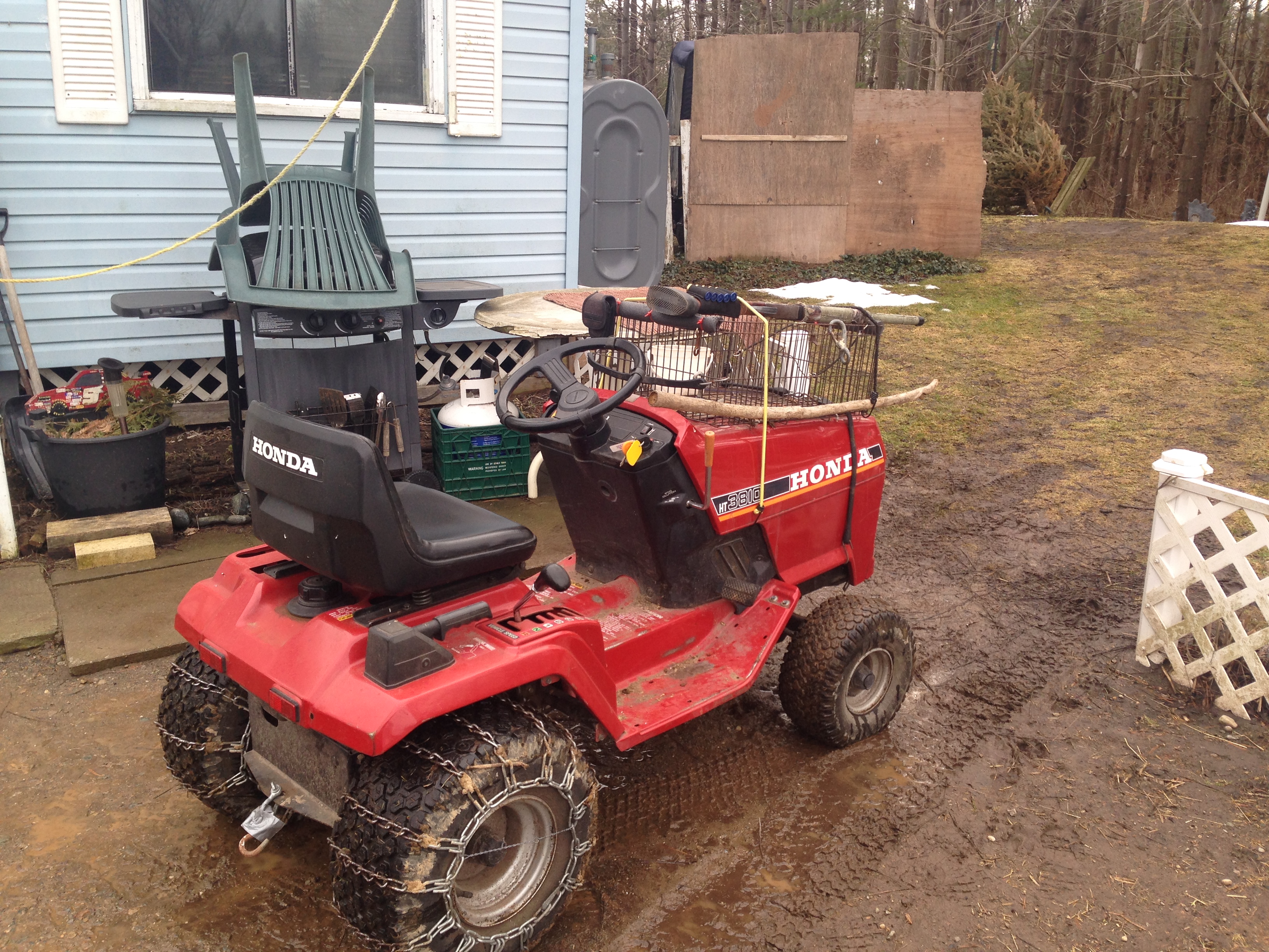 Good stuff Al , you sure that's sap ? Looks more like a homemade moonshiner still to me lol . Yep just pulled my little red convertible yard tractor out of its winter cave , fired right up probably to soon to take the blower & canopy off the other one yet . Thing I'll stay way from bush/mud for few days . Ahhh the wind blowing thru your hair . Haheeee