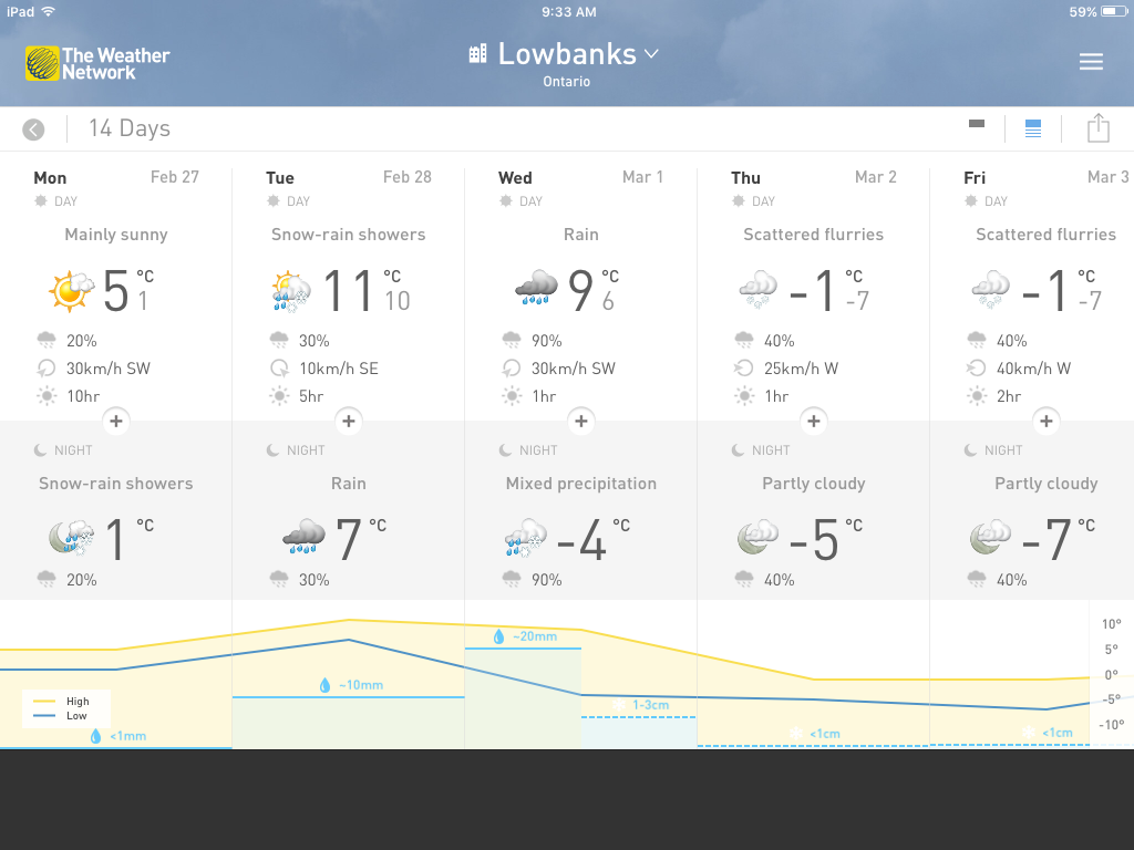 Ideal temps are plus 5 during the day and minus 5 at night. Based on your forecast Monday and Tuesday too warm, Wednesday you might get some flow and Thursday and Friday might get a bit f the temperature creeps up a couple degrees warmer than forecast.