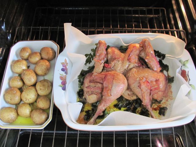 one problem I find with roasting Ameraucana cockerels, is that they are narrow and the breast dries out by the time the bird is done, this flat chicken recipe seems to solve that problem.