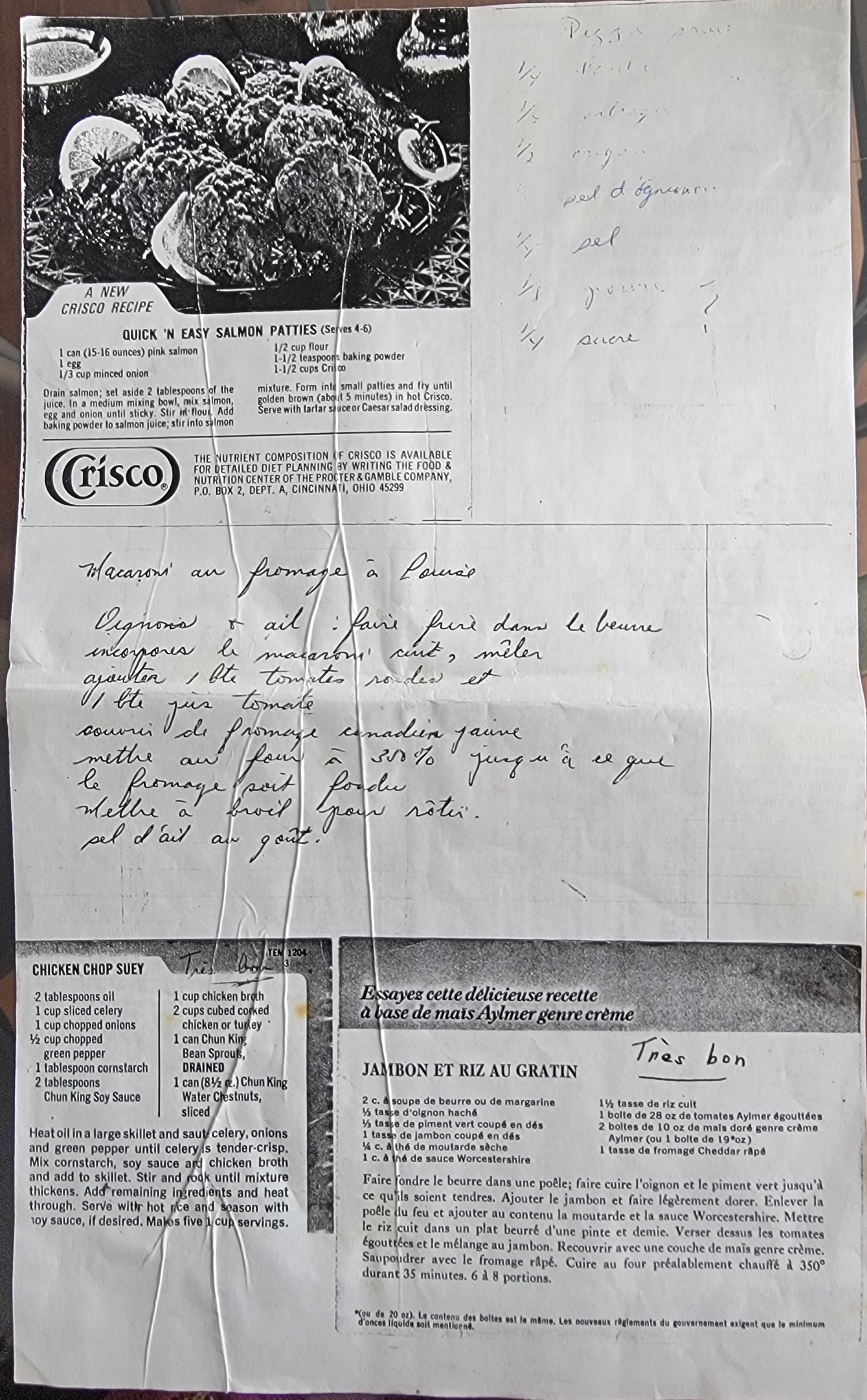 Recipes from my friend's mom. She was a great cook. Loved her Coquilles St. Jacques. RIP Claudette.
