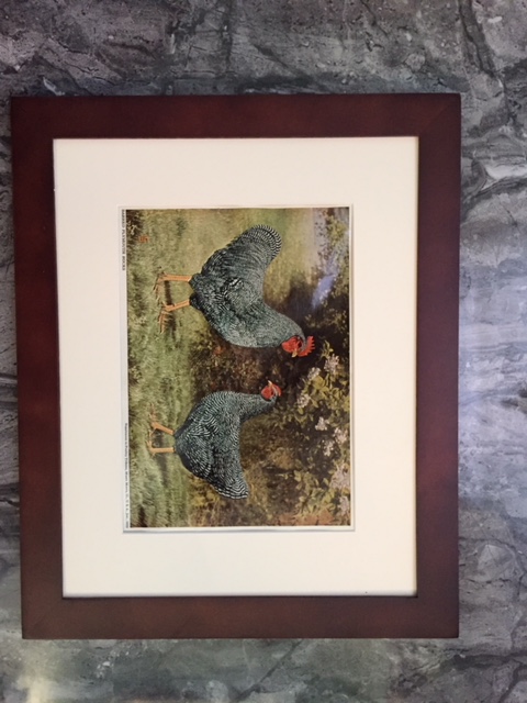 We are ok with the framing .. the matting is a bit of a ha$$le lol, seems modern standard sizing is not compatible with anything produced prior to 1950 lol..... we are not looking to get rich .. but are using the funds from the profit to cover costs of the OPB show.... lots more pictures of various birds on the horizon and I will post them as we get them framed and offer them ... I have been in contact with an expert in the USA.. he is telling me the Leghorn picture is very rare ... it was published in the Poultry Tribune in May of 1923 ,but never reprinted ever again... we have several of these type pictures that were never reprinted. All are very neat ... and a real conversation piece that would grace any ones home. We are pleased to offer them to the hobby.