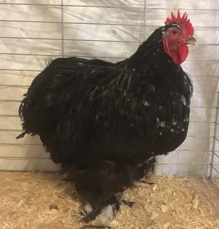 Lot 6 Mottled Cochin Large Fowl donated by Jamie Matts of Harpursville NY . Jamie is well known as one of the best cochin breeders in North America. His work with some of the rare colors is well known. This pair of Large Fowl although a bit young ( 4 months) show great potential in being of powerful type and color. The male is just a little ahead for the female in maturity. This pair will put you in the cochin business fast track.