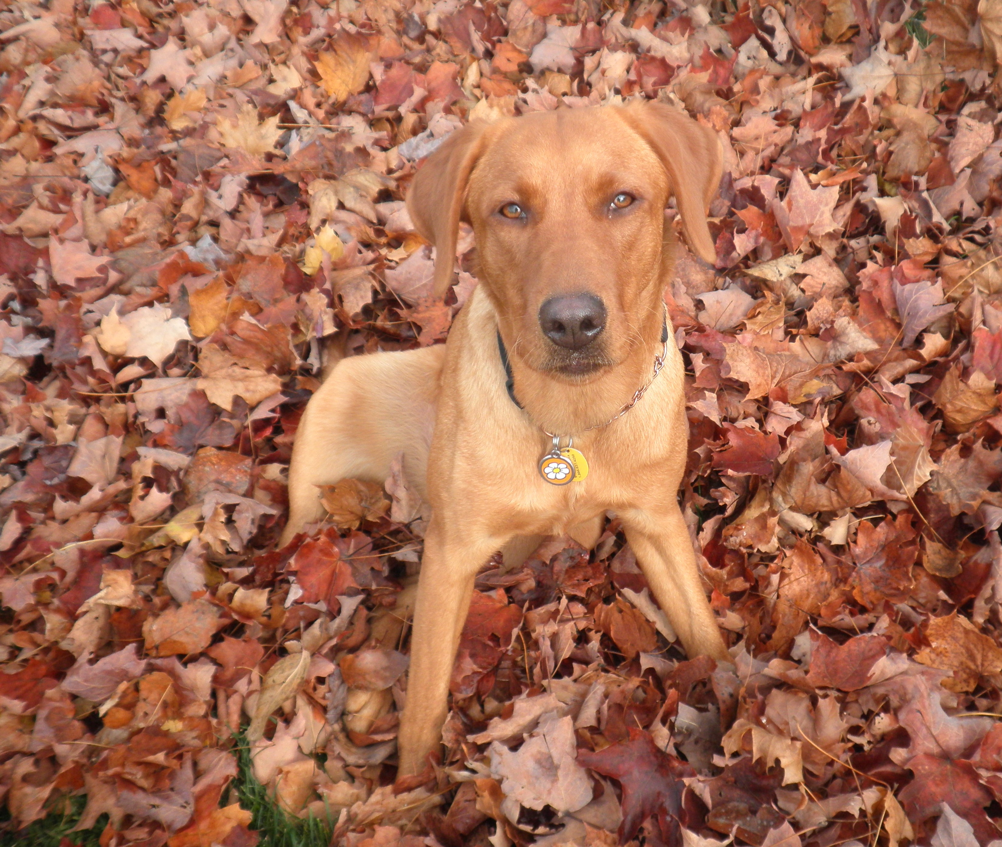 Here's a picture of Amber in the fall leaves, taken during that glorious, summerlike, very un-November-like weather. She's stolen our hearts :).