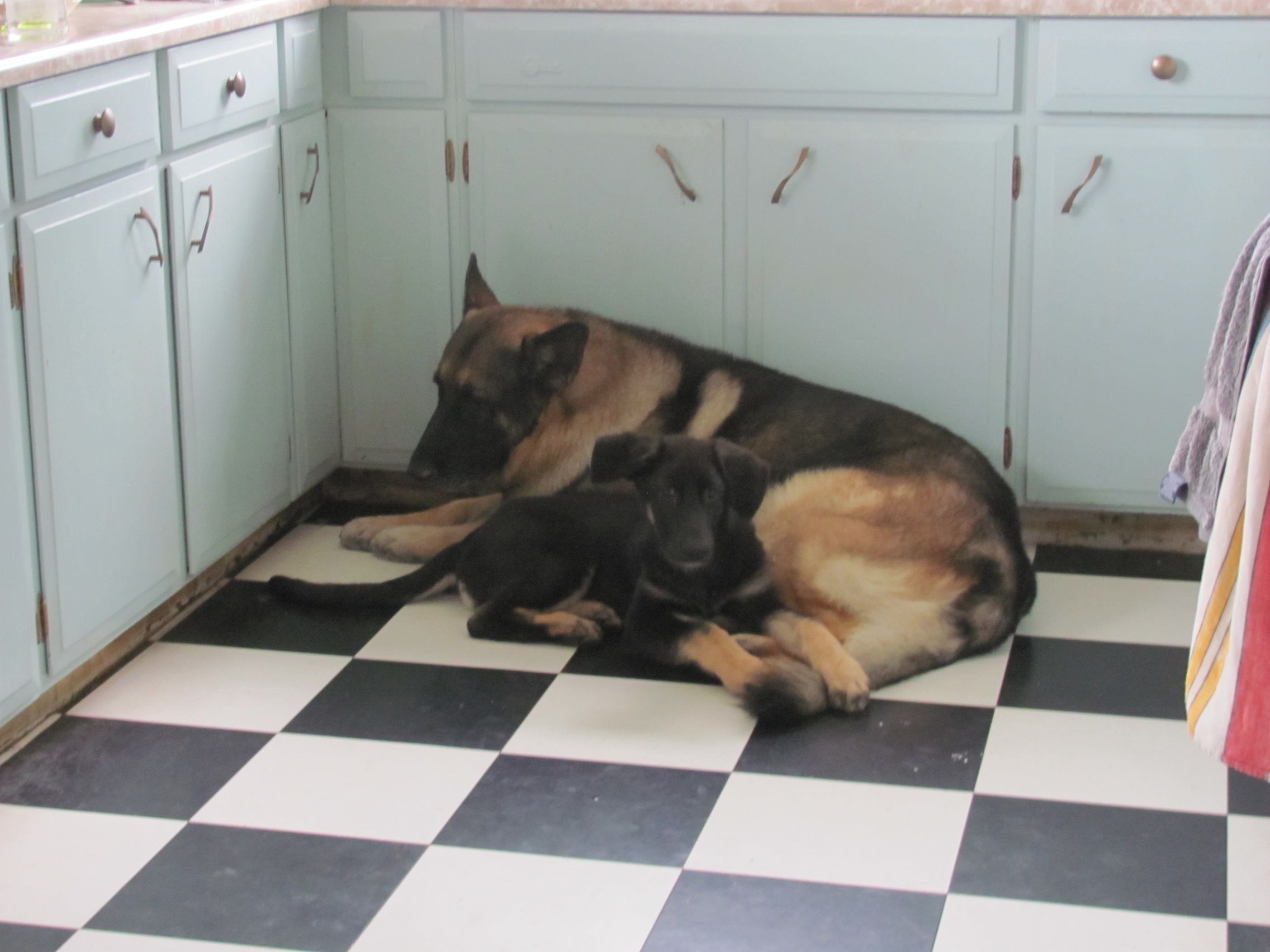 Here's a couple of new pictures. Dillon doesn't love her, but he tolerates her if she's not biting or jumping at him.