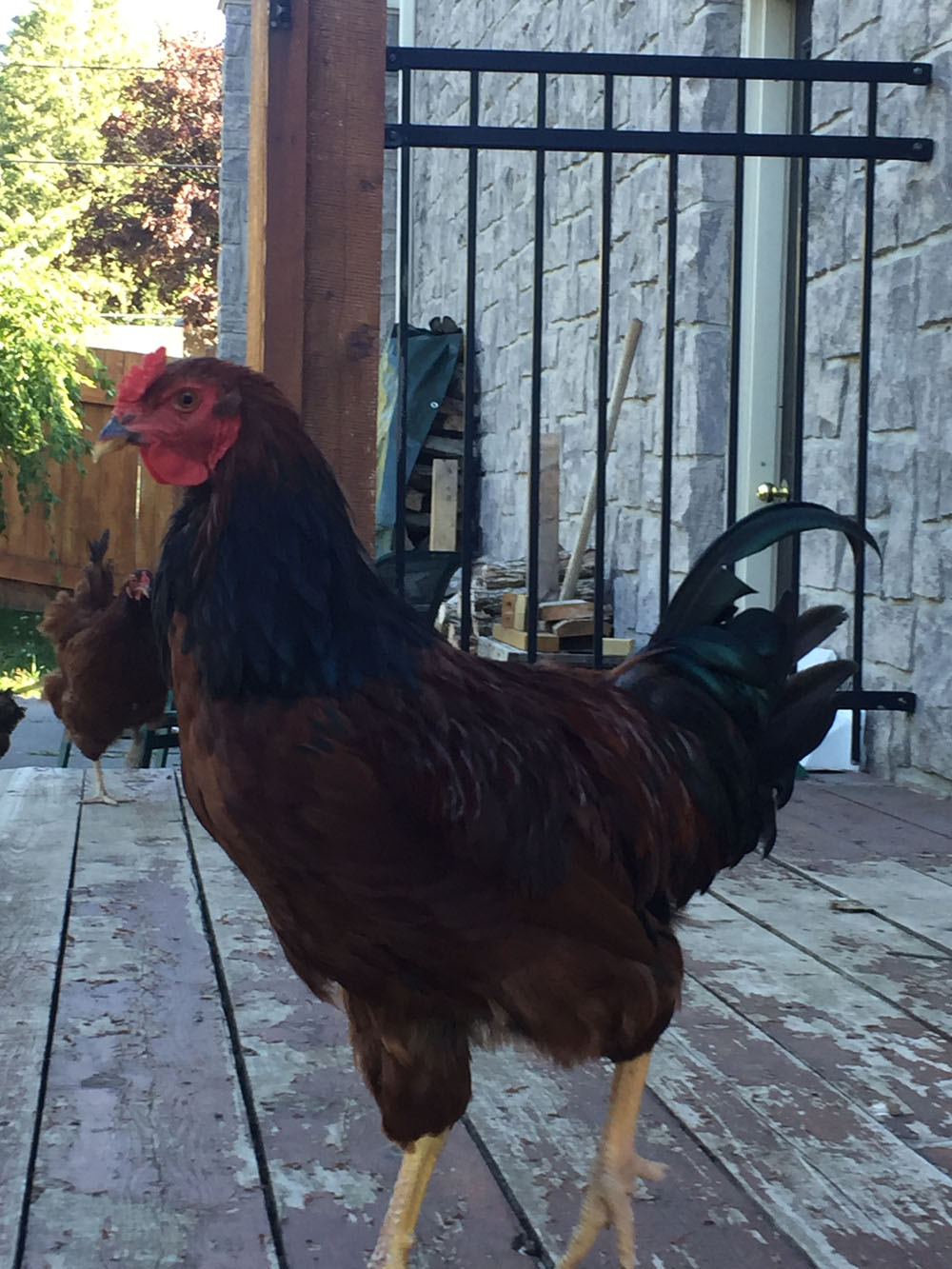 18 week old Partridge Chantecler Mix Rooster free to a good home. Too many roosters for my flock and he needs to find a new home.