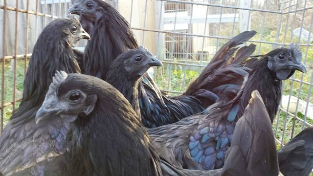 Ayam cemani, BC Marans, Legbars (Gold Crele, Opal and White), Mosaics, Hmongs and Cuckoo Malines