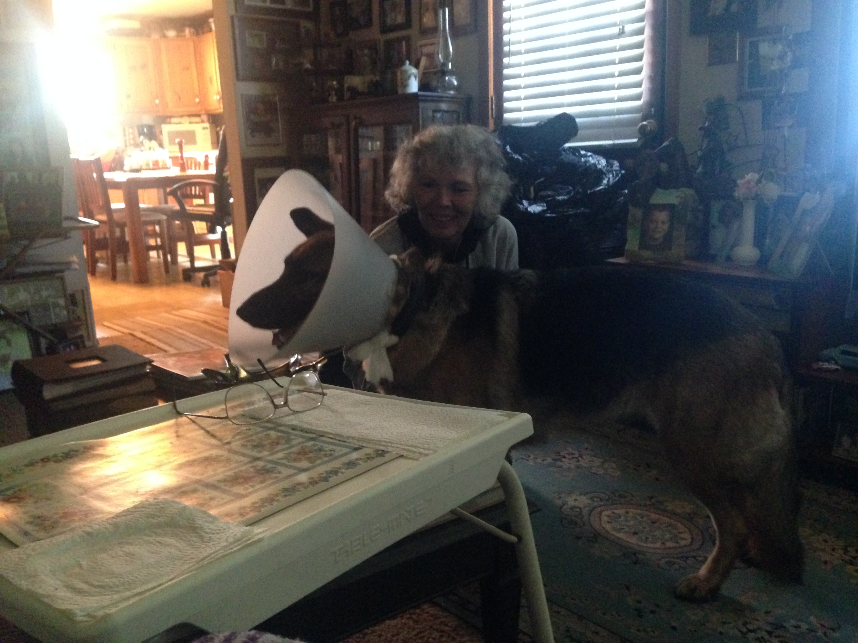 I bet she can't wait for that thing to come off to get a real good look at her new home.