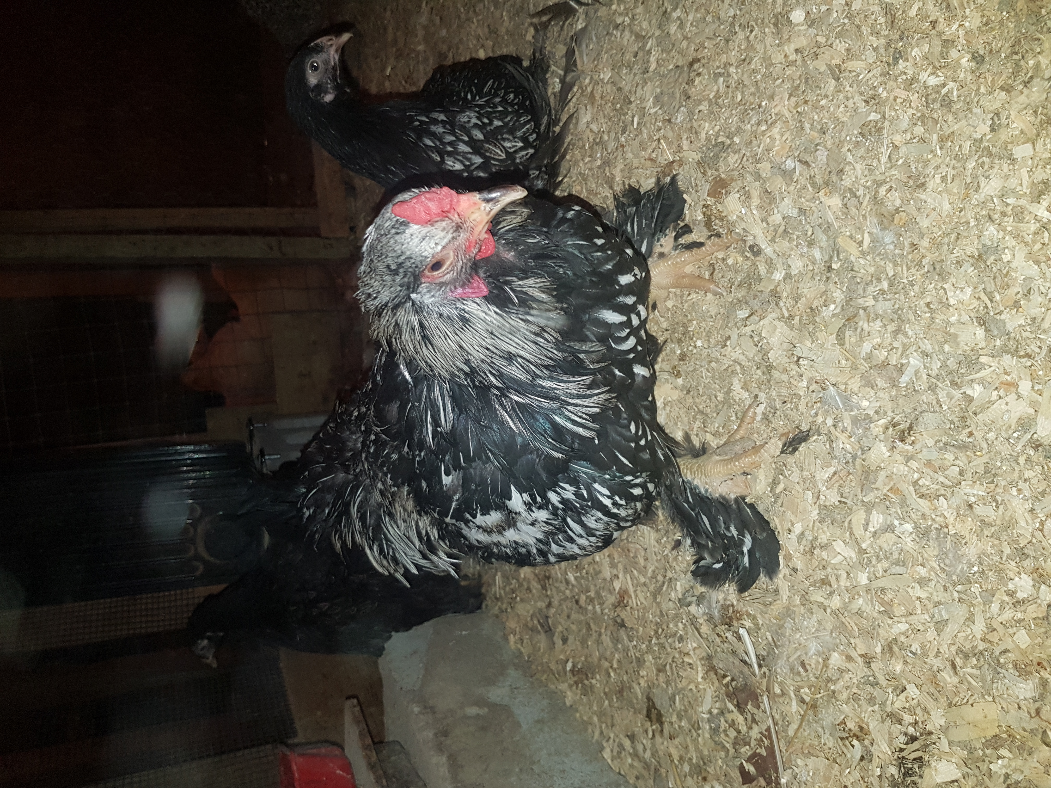 thought they'd be a fun summer project (not that I don't have enough on the go already), I got them from Quebec where the originated before then I'm not sure, they are about 5 months old the male is full silver laced, 1 pullet is 50% silver laced and the other pullet doesn't show any lacing.