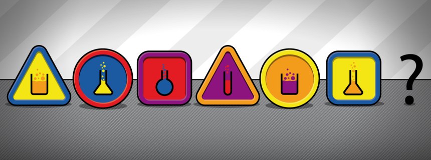 This is easy? I stink at these next pattern ones............ but my guess is, red bordered blue inside triangle with a round yellow flask thingie.