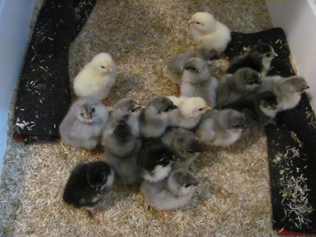 Moved chicks in to the brooder, good Ameraucana crop, although the Black to Blue 50/50 didn't really materialize 12 Blue 4 Black isn't going to give me the 6 Black pullets I was after. Only 5 Columbians, very disappointing, another load of Wyandotte eggs in this morning and that will be it for me..