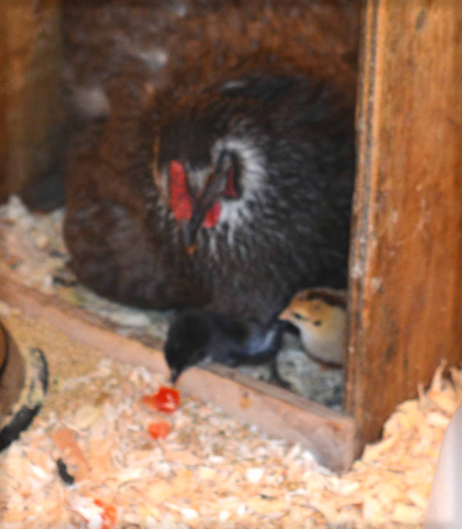 I see you give mama tomato treats to share with her little ones. I did the same. And watermelon. And kale. Lots of mama's favourites were offered. I really like watching how enthusiastic broody hens are about teaching their chicks what's good.