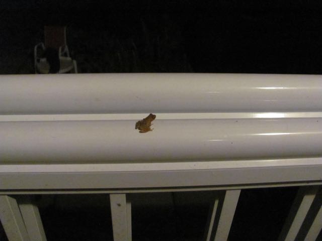 the littlest frog ever and this one having a little think by the back door, possibly considering sharing our basement with the newts?