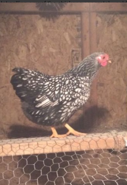 Old English in silver duckwing, spangled and black, wyndottes in silver laced and partridge and silkies