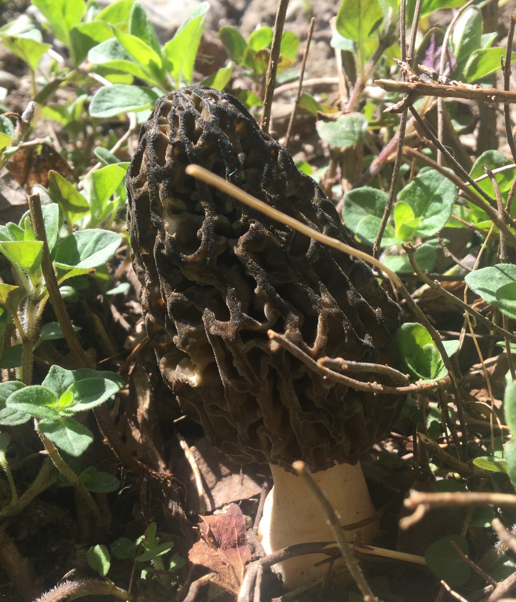 Discovered this morel this morning in my herb garden by thr side door in the oregano! Only one so do I harvest it or leave it to make spores for next year...