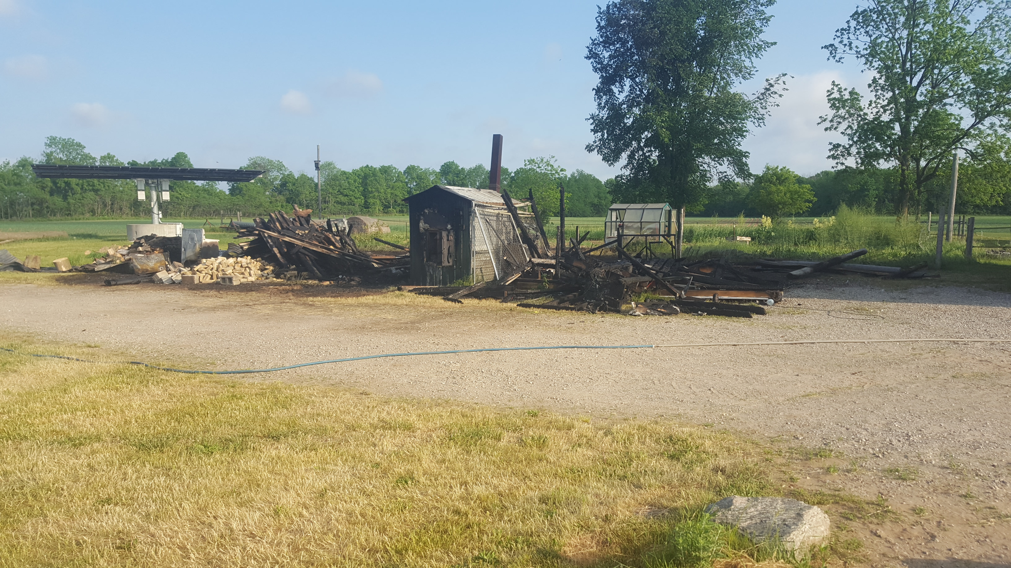 So we had a huge scare on Wednesday night. Those were two sheds, a chicken tractor (without chickens) and a greenhouse. Thanks to the fire department we were able to stop it from spreading to the barn with all the livestock and the house. Soooo lucky that there were no critters or people hurt. And the damage is relatively small, too. Flames were impressive though. I have never felt such a hot fire before. And the neighbours were able to see the flames shoot above the trees. We had a very strong south wind that fueled it on pretty crazy but also pushed it away from the barn and the house.