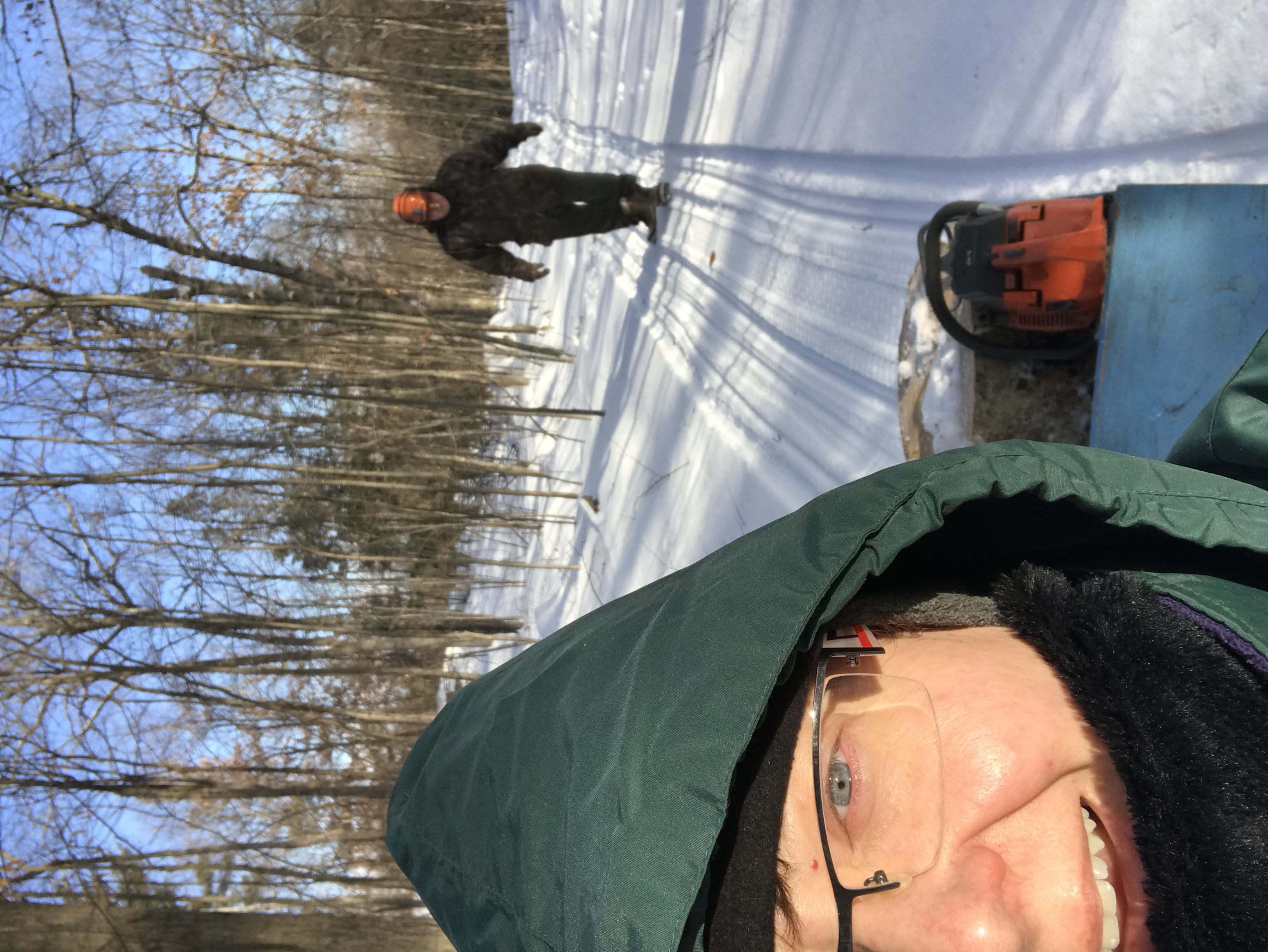 cut a big old birch - moving one slice at a time in the sled.