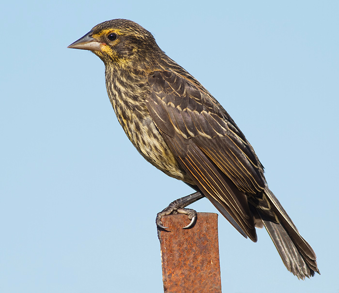 Not certain but we had a whole bunch of these in the marsh last year and they acted like a RWBB etc. and that's the nearest I can come up with in the bird guide!