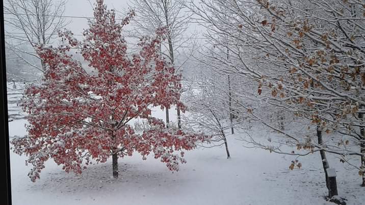 This Red Maple tree was planted as a house warming present 12 years ago. We have another week or so of this being the first thing we see when we look out our living room window.