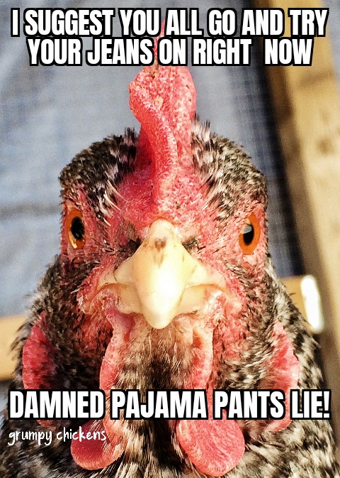 That was evil, no way I'm trying jeans on now!I've been sending some of these to my cousin in the UK who thinks they're great. She is in her eighties and doing fine with neighbours getting her supplies and leaving them out for her.