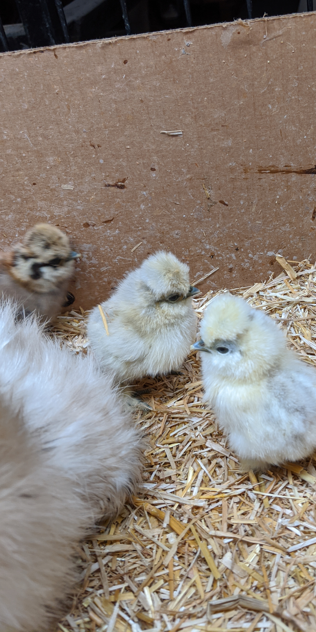 There are 8. 6 showgirls and 2 silkies. And of course my black pullet. She isn't even close to a year and went seriously broody. She has been doing a great job! There are 2 older showgirls in with the babies. Their Mom deserted them within 2 weeks, so i put them under the black girl. No questions asked! They are hers