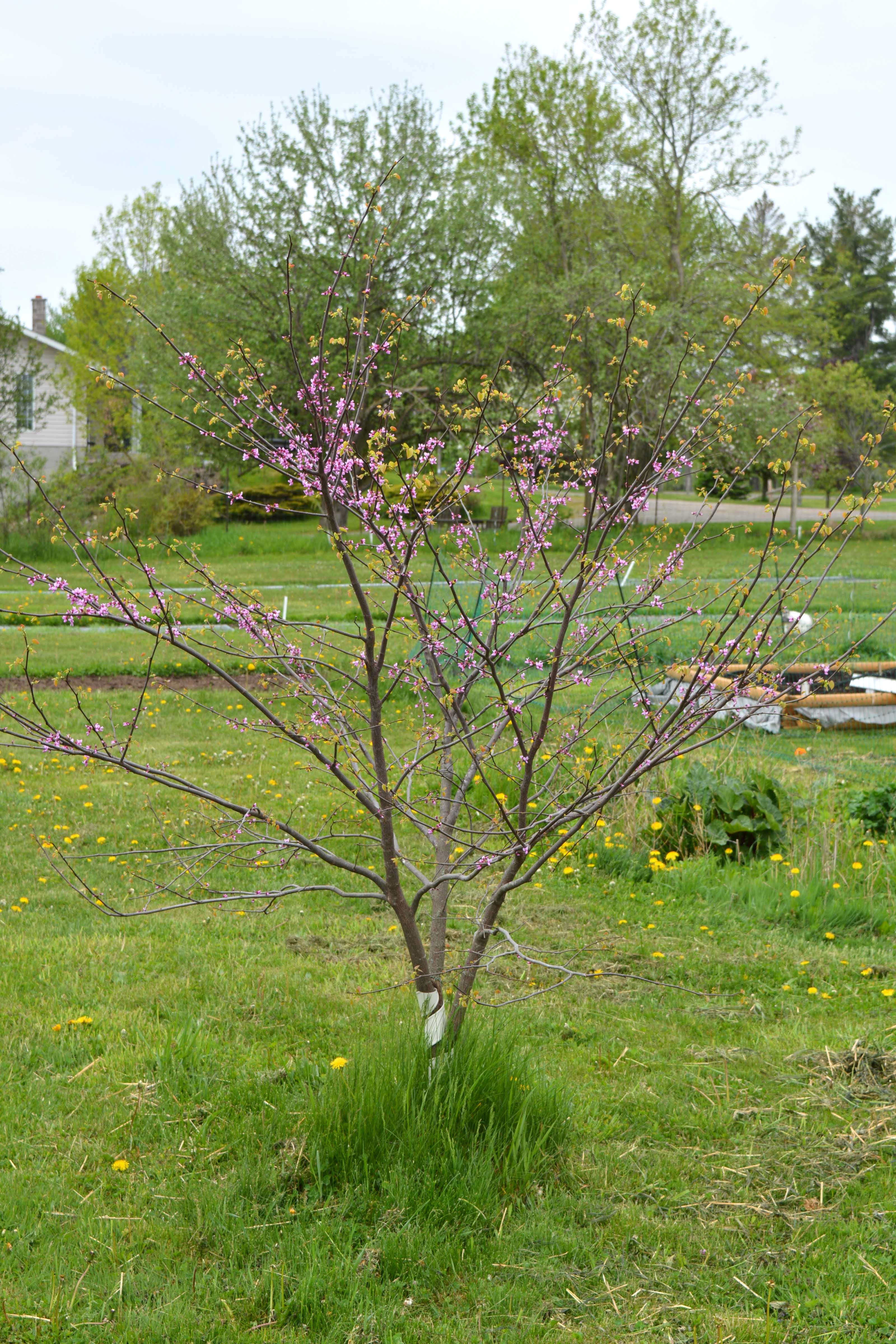 My redbud just started blooming and it's so hot outside the blooms are up and gone in a day. we are over 30C down here right now. My poor freshly almost finished planting garden looks horrible! I've watered, and will need to water again tonight so hopefully the plants recover overnight. The asparagus grew a foot today. seriously. this is way way too warm. my horses will hopefully finish shedding now.....argh!