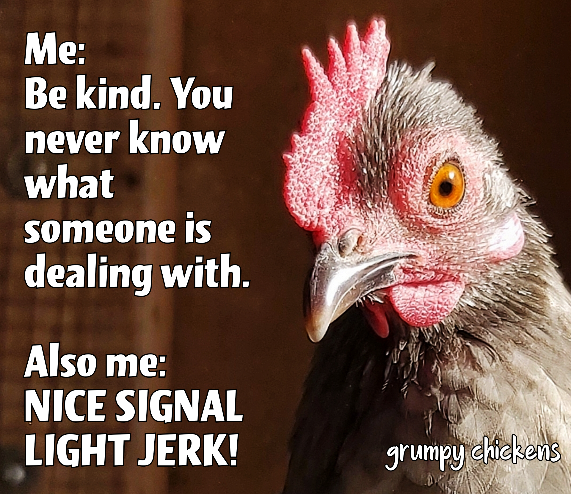Yes well, I try for the illusion of being a nice person, but the one and only time I have visited an actual grocery store after they put all the completely nonsensical one way blocking off isle system, I was a bit surprised just how thin the civilization veneer really is, and how much effort it required to pretend I still had one.