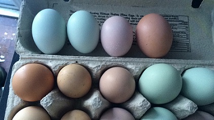 AWESOME! thats such a great bunch of eggs! thanks for sharing! what breed are the purple ones? ameraucana?