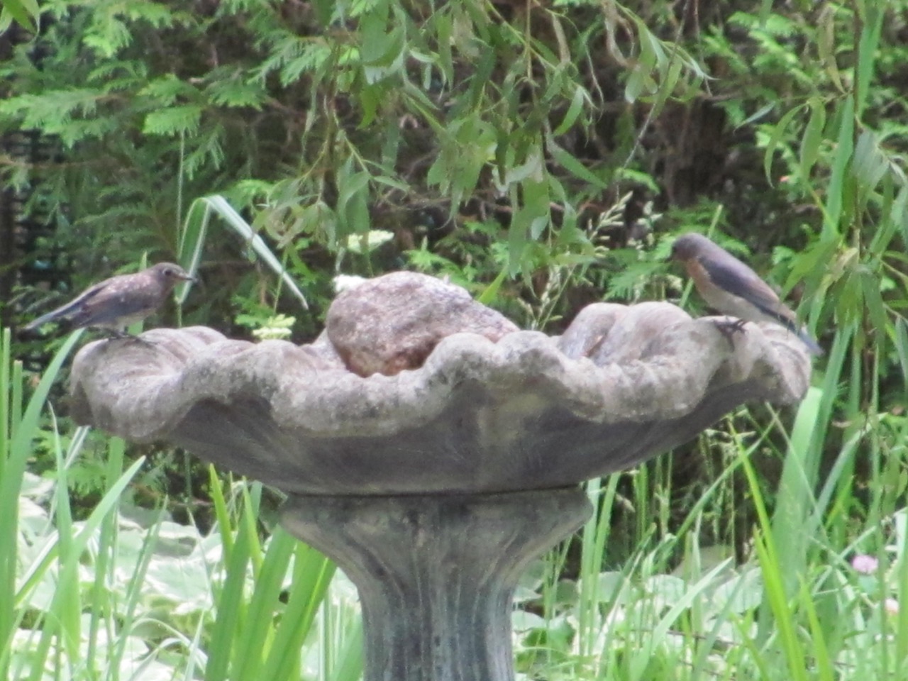 and unless I am mistaken mama bluebird took the babies out to have a bath, there were at least 3 in there, but hard to tell, there was so much splashing, I was laughing so hard it was difficult to take a good picture, it looked exactly like little kids in a kiddie pool..