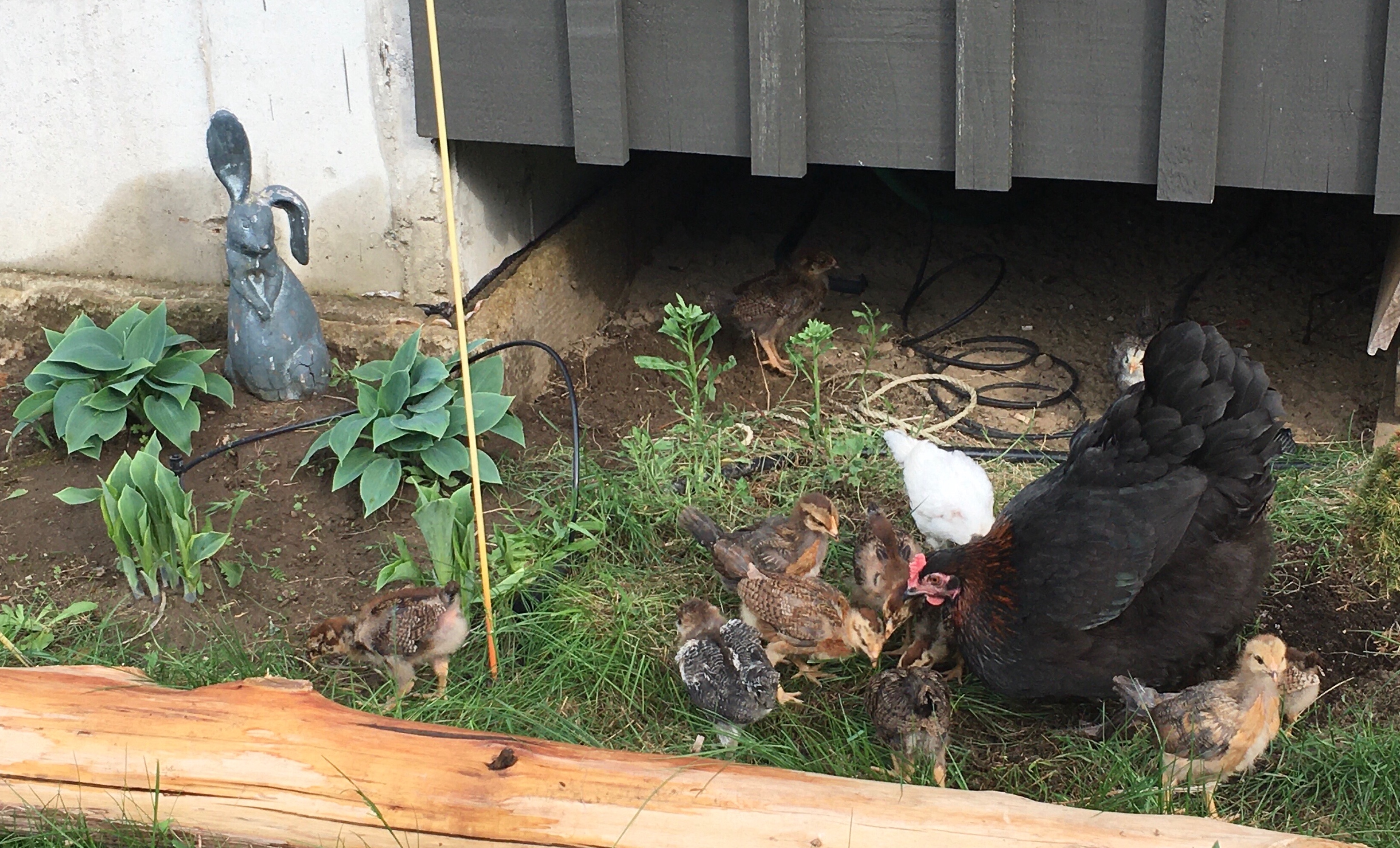 At some point I will have to just cart them out to the coop I guess, and let them venture out from there (mama hasn't taken them back to the coop).
