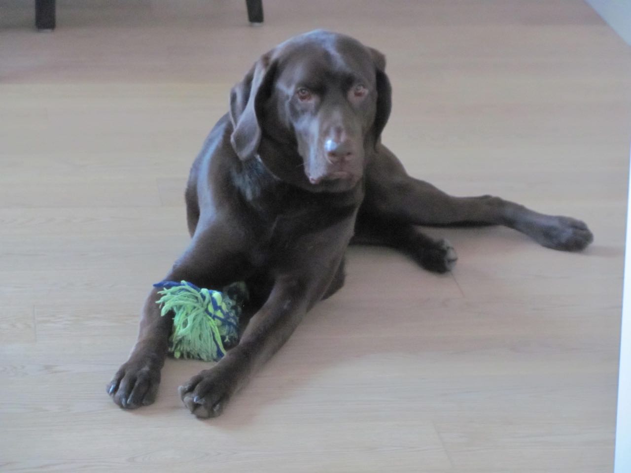 House sitting in Coquitlam with Forest, four year old chocolate Lab, that has got to be the most laid back dog ever.